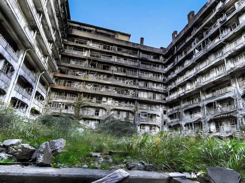 Off the coast of Japan, there lies an abandoned mining complex called Gunkanjima Island, sometimes referred to as Hashima Island. The island’s overgrown concrete and industrial structures, together with the frightening “Stairway to Hell,” are open for exploration by tourists. Hashima Island was used for part of the filming of the James Bond film Skyfall.