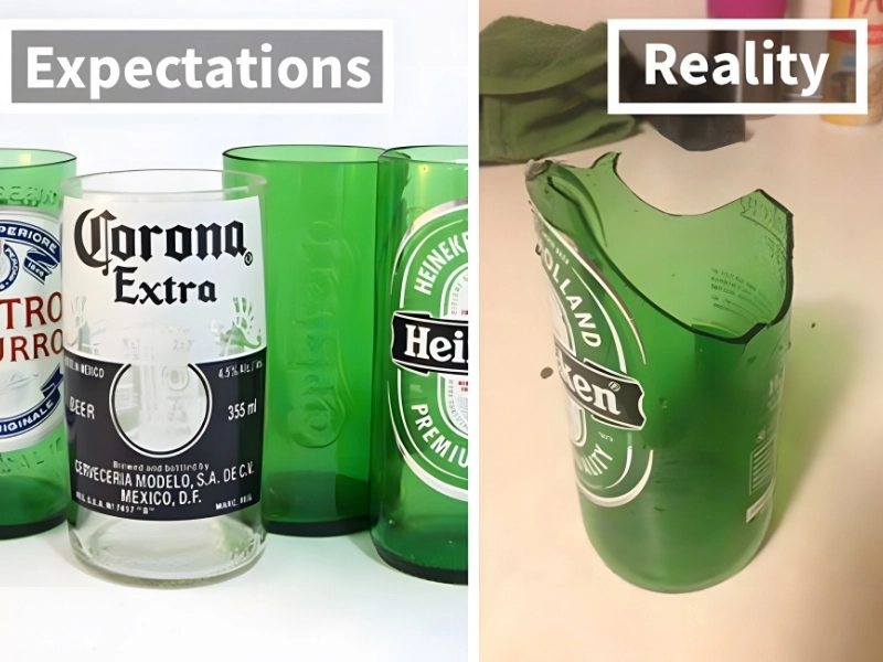 Someone came upon a do-it-yourself method that converted beer bottles into dishwasher-safe glasses. Most likely, pricey power equipment was used to precisely cut and sand down the glass. Just shattering a bottle in half does not create a glass, as the wannabe imitator discovered.
