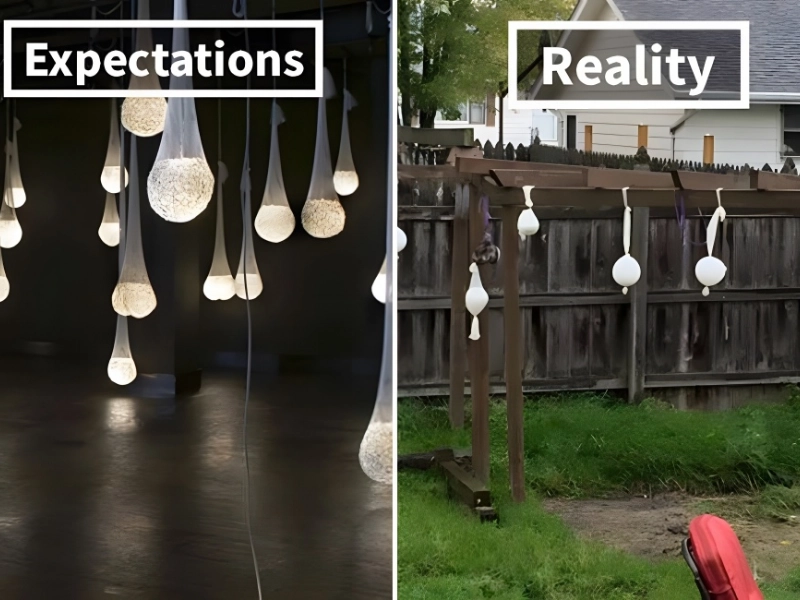 This is the logical development of A Christmas Story’s leg lamp. This is a horrible DIY ornament effort, similar to many holiday-themed Pinterest boards. Balls in pantyhose and hanging them was an innovative concept that was already highly unlikely to succeed, but when a copycat tried it, the results were considerably worse.
