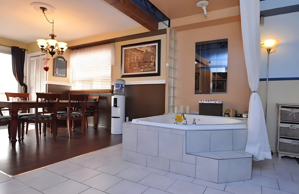 There are many different ways to revamp your home, but typically sticking a hot tub or a giant bathroom right next to the dining room isn’t the winning idea. If that’s your plan, at least budget for a wall in between the two, even if it costs a little more.