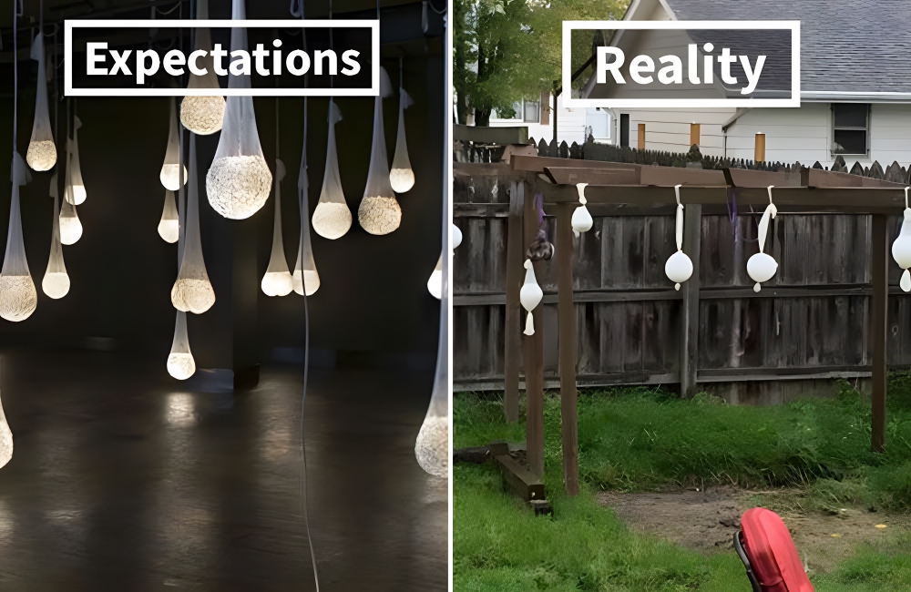 This is the natural evolution of the leg lamp from A Christmas Story. Like a lot of things on Pinterest around the holidays, this is a bad DIY project involving ornaments. The original concept—placing balls into panty hose and hanging them—was already a long shot, and one copycat found that it went even worse when they tried it.
