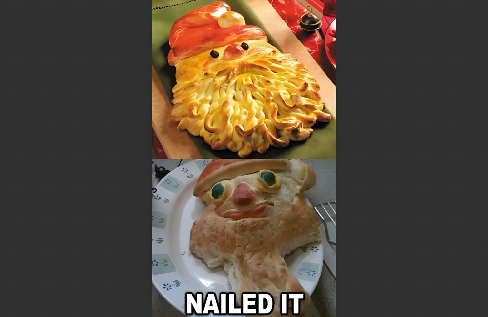 When it comes to cooking, you can have the same ingredients as an experienced chef and all of the enthusiasm, but that doesn’t mean it’s going to turn out well. This person likely spent the same amount trying to recreate Santa’s head out of bread, but it turned out to be a waste.