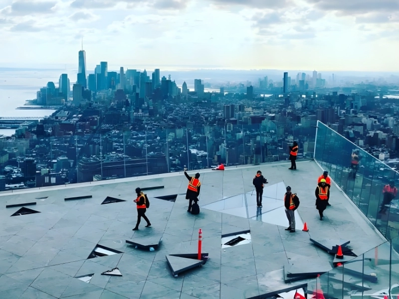 Liz Huang did a fantastic job capturing in this photo how each employee appears to be focused on their respective tasks even though they are all working together on the project. Their vibrant vest colors stand out against the picturesque backdrop of the city, symbolizing the fact that every rooftop has a tale to tell.