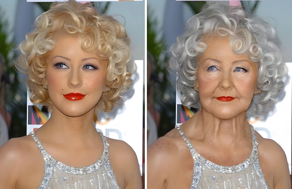 With that being said, one artist called Grumblebits thought it would be a novel idea to age up Xtina to see what she might look like in a few years. With a curly grey mane of hair and thinner lips, Aguilera certainly looks different, but just like the Sony star once crooned, “You are beautiful, no matter what they say.”