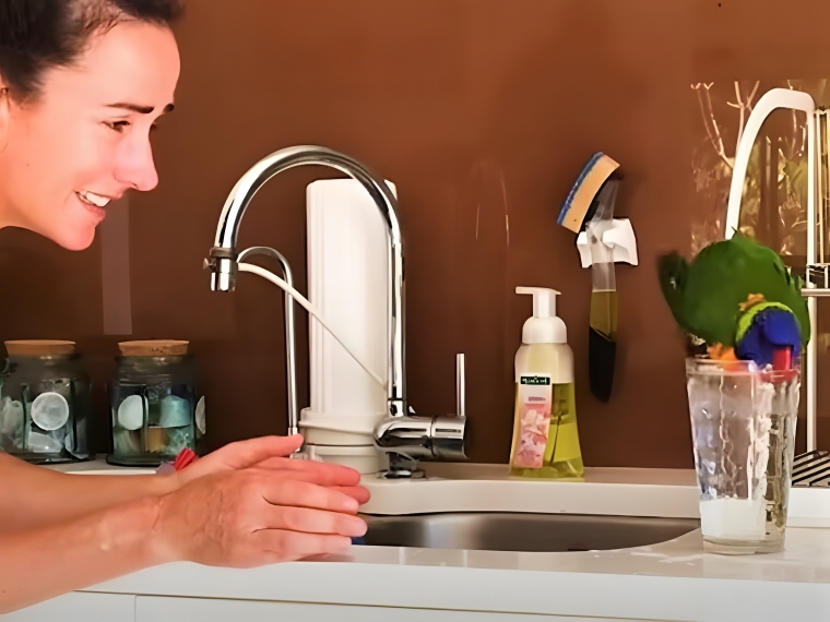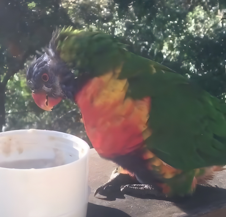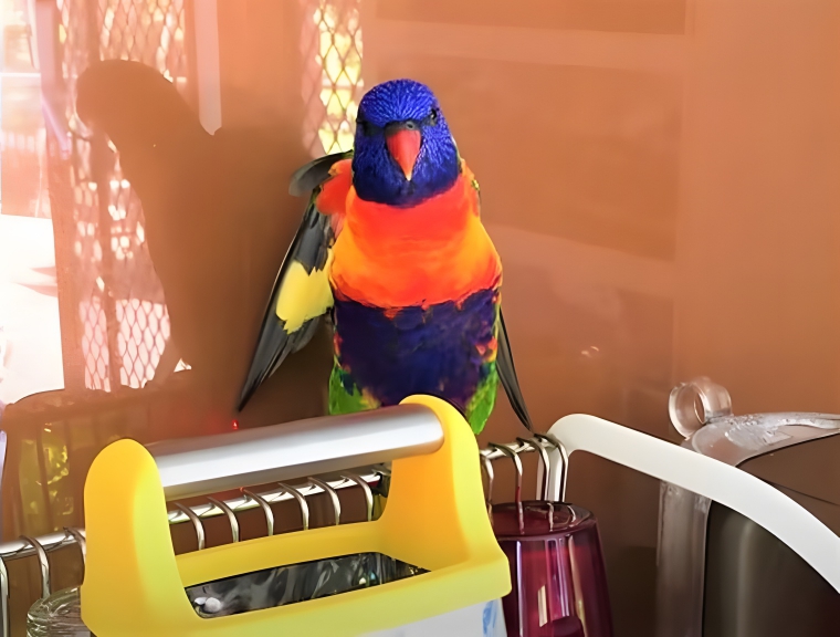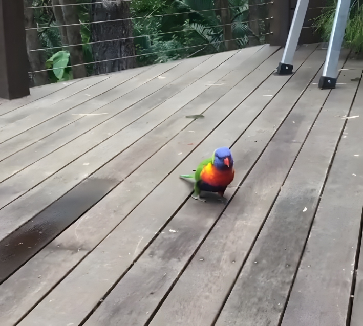 Although Bee was certainly enjoying the snuggles, too, there came a point where she had to get moving. She couldn’t sit out on her deck forever, and she knew that she needed to get herself some food and water. So, she carefully got the bird off her and went into her kitchen. She didn’t know what the lorikeet would do next, but she definitely didn’t expect it to follow her inside!