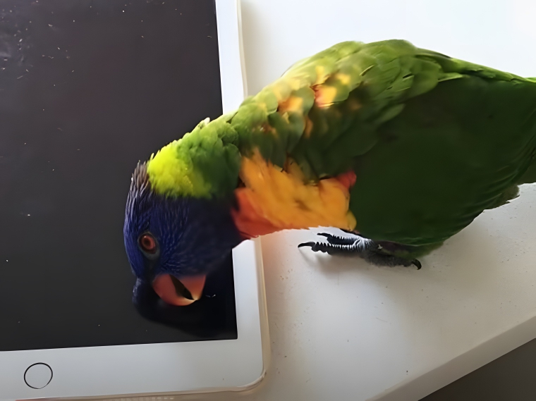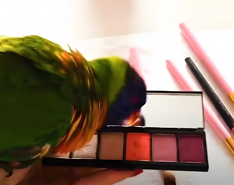 But that’s not all. When he’s not playing on the iPad, Elvis loves to help Bee put on her makeup. He even gets involved and tries to apply it with his beak.
