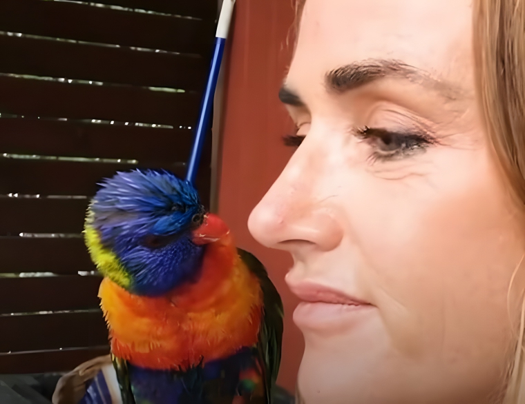 The lorikeet looked as though it was troubled. He was puffing up his feathers, he seemed to be panting and trying to catch his breath, and he looked exhausted. And when he realized that Bee was a friendly human, he immediately nuzzled into her. As you can imagine, Bee was incredibly shocked by this strange turn of events – but she could tell that the bird needed some attention. So, she gave it to him.