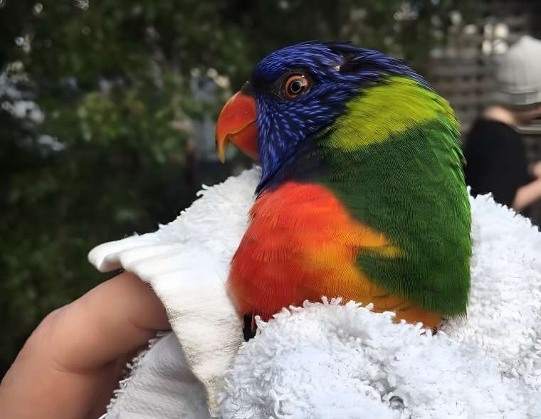 But while the Shy Wolf Sanctuary had an established shelter where they could look after Yuki the wolfdog, Bee wasn’t quite so lucky. In fact, she was simply sitting on her deck at her home in Queensland when she was visited by her stray. And that stray was a beautiful lorikeet that boasted the most gorgeous colors she had ever seen. Of course, she was used to seeing these birds, but she wasn’t used to them flying in her home.