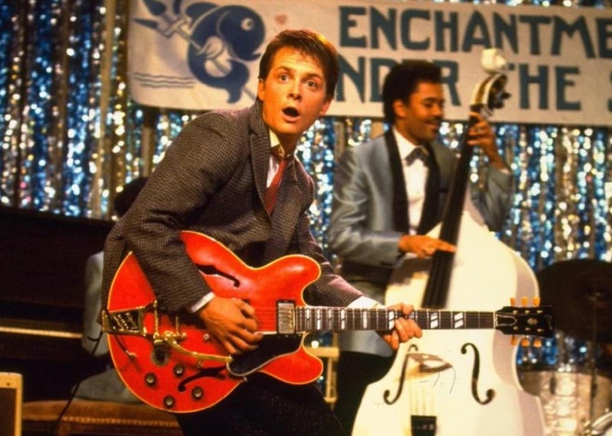 Indeed, in the prom night scene of his parents in 1955, the main character plays a Gibson ES-345 guitar, which was manufactured in 1958.