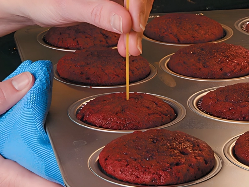 The most frequent approach to determine whether one of these baked items is done is to use a toothpick or a fork. But what happens if you run out of toothpicks and your forks are in the dishwasher? You can substitute a dry, uncooked spaghetti noodle for the same reason.