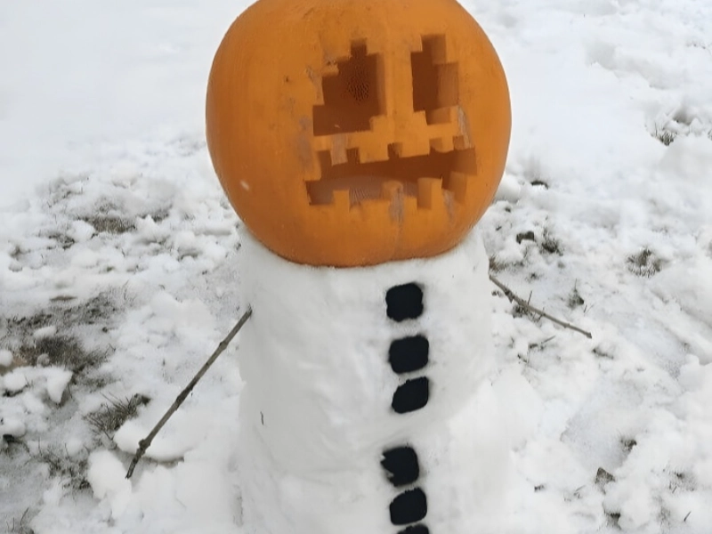 Unusual weather patterns brought on by climate change have been causing occasional unexpected snowfall in areas usually free of winter. When snow hit exceptionally early in the season, this special circumstances in Utah resulted in a creative mix of Halloween and winter customs. Seizing this uncommon chance to combine two seasonal celebrations into one artistic presentation, the designer created Their lovely hybrid, which aptly portrays the transitional season between fall and winter, was produced by incorporating their Halloween pumpkin decorations into a classic snowman construction. The resultant work has the traditional spherical form of a snowman but deftly employs a jack-o’-lantern as its head to create a whimsical figure spanning two dear holidays. This surprising mix not only shows innovative problem-solving but also shows how shifting weather patterns may motivate fresh kinds of seasonal art. Viewers’ eyes will be drawn to and smiles will be generated by the visually arresting show created by the orange pumpkin against pure white snow.