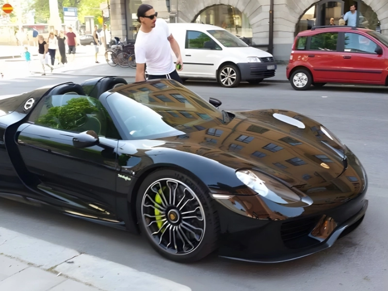 The iconic Swedish football player Zlatan Ibrahimović, renowned for his dynamic play style and captivating demeanour, is the proud owner of a Porsche 918 Spyder. The Porsche 918 Spyder is a mid-engine plug-in hybrid sports car with limited production that was manufactured between 2013 and 2015. The vehicle has a powerful 4.6-litre V8 engine that produces 282 horsepower, in addition to two electric motors. This adds up to an incredible 887 horsepower overall output, which is more than enough to accelerate the automobile from 0 to 60 miles per hour in 2.6 seconds, with a top speed of 214 mph.