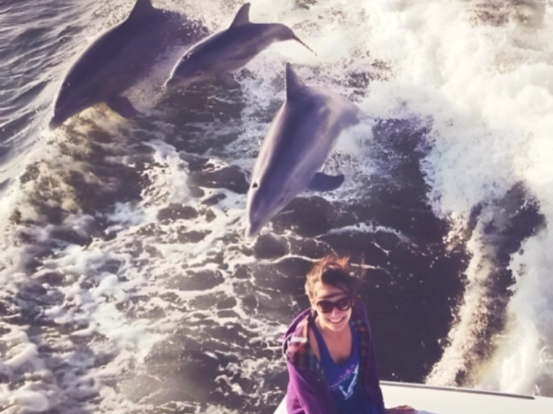 An regular vacation picture turned into an amazing serendipitous event when a family of dolphins decided to pay an unplanned visit. The scenario opens on a moving boat where a girl positioned herself for what she believed to be a typical tourist view. Rather, the final shot caught something considerably more magical: a precisely timed dolphin photobomb that seemed almost too fantastic to be real.