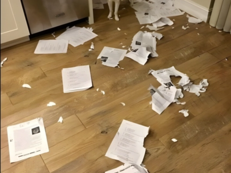 In an ironic turn of events that aptly captures the essence of life’s humour, a teacher discovered themselves in the embarrassing position of having to tell their students their homework had truly been consumed by a dog—their own. Captured in a picture showing the guilty party surrounded by the proof of their paper-based feast, this role reversal of the traditional student explanation has become a really funny scenario. Amid a sea of shredded homework meant for grading, the image depicts the offender looking anything from guilty.