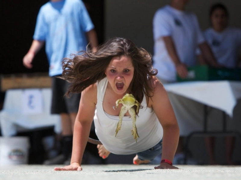 Participants in the unique and entertaining Frog Race race while sprinting while wearing sacks that mimic a frog’s rear legs. For the purpose of covering a distance or crossing the finish line, participants must hop and run while only using their “frog” legs in the bags. This sport is popular at fairs, festivals, and celebrations and offers both physical and recreational delight.