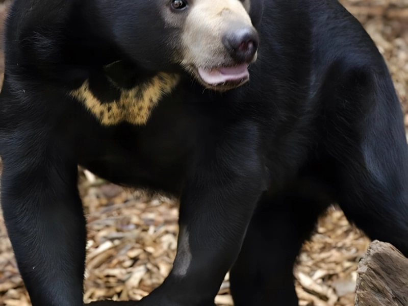 This bear comes with a built-in bow tie on its breast rather than having to buy one. Check the white speckled fur around its neck. Not found in any store, that is a 100% natural bow tie.