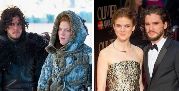 Keith Harington and Rose Leslie. During the two and a half seasons of the “Game of Thrones,” everyone wondered who would win the heart of the impregnable John Snow. This lucky person was the red-haired wild Igritt. After a while there were suggestions that it would not be easy to shoot these relationships and turned out to be prophetic. Rose and Kit have long been noticed on a walk and in a cafe, and on April 4, 2016 young actors visited the Olivier Awards as a couple, holding hands gently.