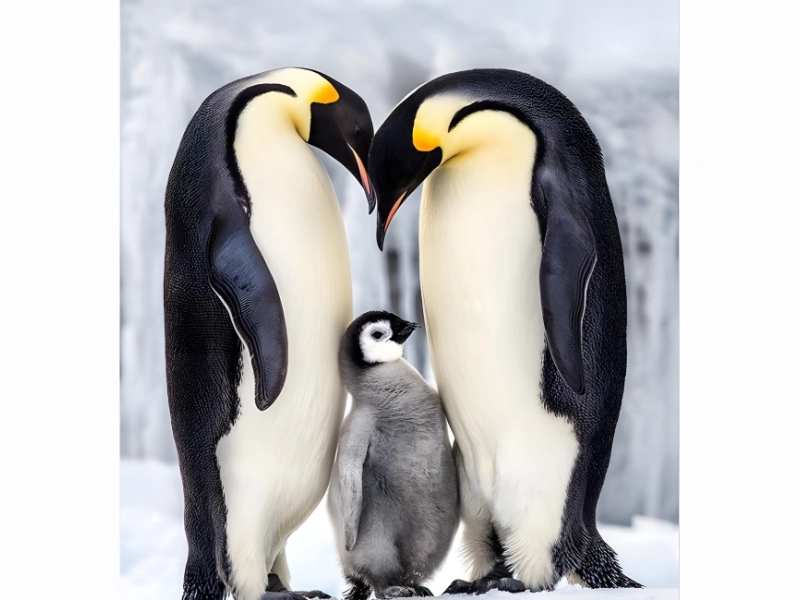 All animals find parenthood to be beautiful, and penguins are no different. This image of two penguins holding their young was captured by Paul Nicklen in the Ross Sea in Antarctica. A newborn Emperor Penguin requires a lot of care, according to Nicklen.