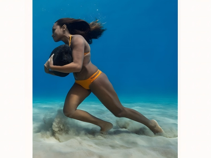 This image of Ha’a Keaulana, a rock runner, was taken by Paul Nicklen. Keaulana is practicing surfing when she lugs a fifty-pound boulder across Makaha, Hawaii’s seafloor. Keulana’s training aids in her preparation in the event that waves knock her down and drag her into the ocean’s whirling undertow.