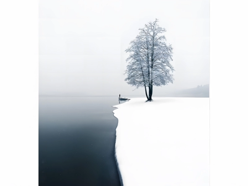 One of the five themes in Lagerstedt’s book, Landscapes with Soul, includes this image. It’s striking how the dark water contrasts with the white snow. One of the best cameras for the winter is the Olympus OM-D E-M1X, which you can take anywhere you like, no matter how cold it gets.