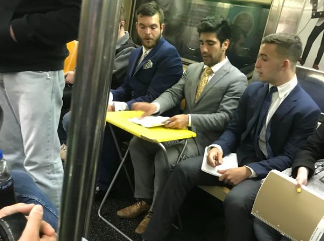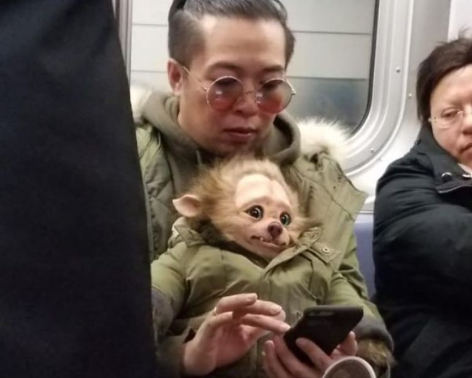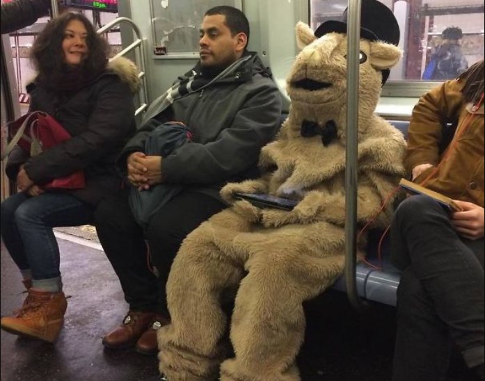 The strange subway passenger attracted attention.