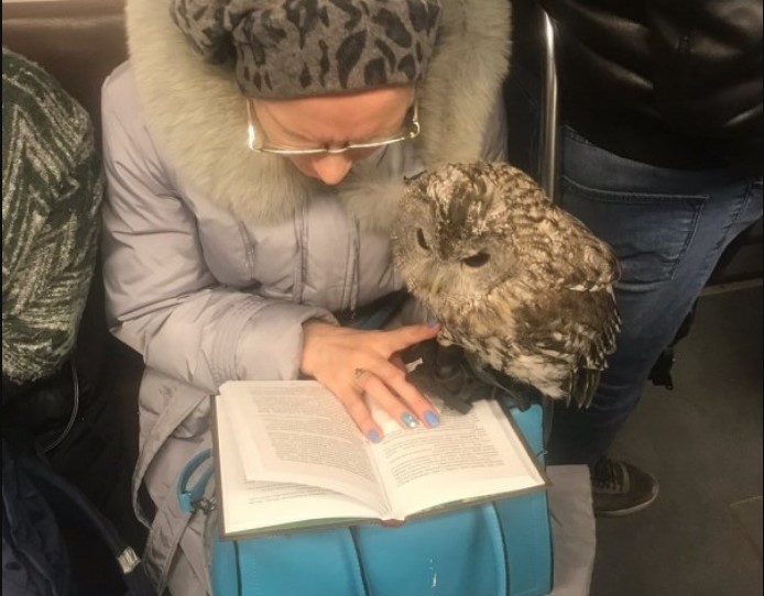 A woman with her own owl.
