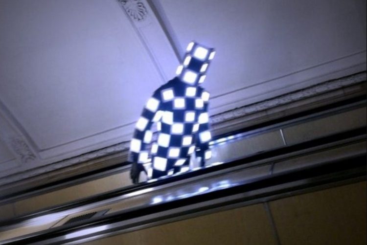 A glowing person in the subway.