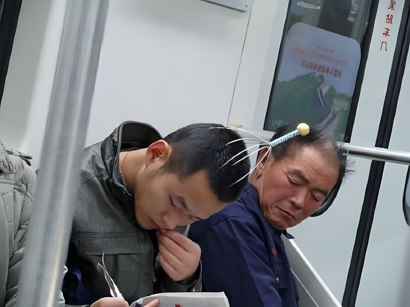 Head massage in the tube: a sign that you’ve mastered the art of balancing enjoyment and practicality.