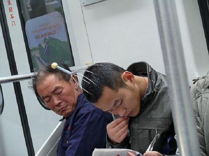 Head massage in the subway: when you’ve learned to combine pleasure with usefulness.