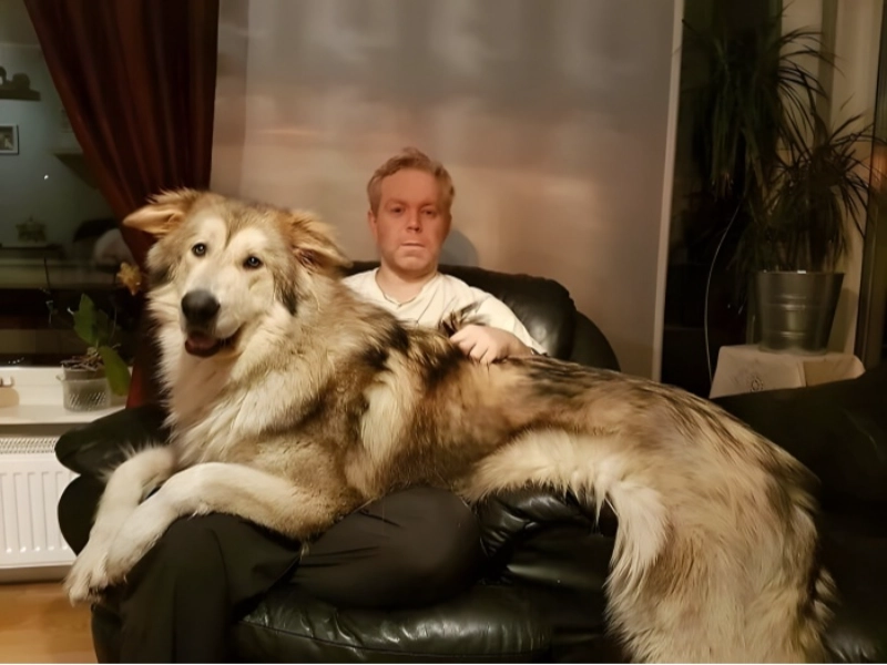 The setting is exactly set: the big chair, the authoritative presence, and instead of the conventional white Persian cat we get this amazing canine specimen roughly the size of a small car. The irony here is great; whereas Bond villains usually touch their animals with deliberate malice, this massive dog utterly destroys the classic evil mastermind look. Someone followed the supervillain handbook, but unintentionally ordered from the incorrect pet shop.