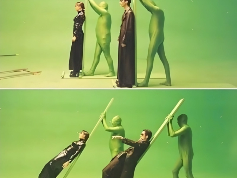 Though they spawn many parodies and imitations, the famous bullet-dodging sequences from The Matrix turn out to be less magical in their construction than many would have anticipated. To create these new visual effects, the behind-the-scenes footage shows the great usage of green screen technology and well built sound stages. The well-known “bullet time” sequences—where people fall back in apparently impossible slow-motion to evade gunfire—needed a sophisticated mix of many cameras, exact synchronisation, and heavy post-production work. Although this disclosure might help to partially demystify the most unforgettable events in the movie, it really emphasises the innovative character of the technical successes of the production. The Wachowski’s vision stretched the possibilities for action cinematography, producing effects that would impact movies going forward for decades. Though maybe unassuming in these behind-the-scenes pictures, the green screen arrangement enabled some of the most creative and powerful special effects in movie history.