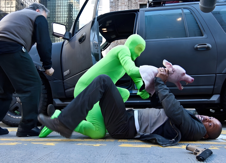 Right now, looking at this bizarre man wearing a green morph suit and playing the role of the infected dog actually makes me feel a whole lot better.
