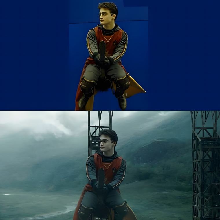 Obviously, if Hollywood doesn’t feature a flying scene, it won’t be an exclusive behind the scenes peek. Daniel Radcliffe must have enjoyed pretending to glide and swipe through the air.
