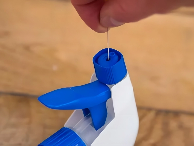 After being stored for a time, spray bottles often become blocked. Instead of giving up and discarding the bottle, unscrew a clip and insert its sharp tip through the spray nozzle. Hopefully, this will remove whatever is preventing the spray bottle from working.