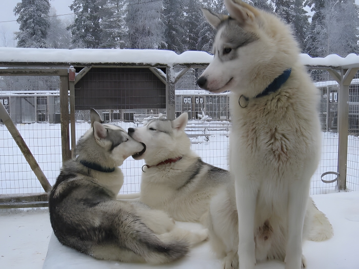 Have you ever come across dogs that are just so derpy you can’t cope? Well, look no further! And it seems as though the husky at the front doesn’t quite understand how his brothers could be so derpy, either. While those two at the back eat each other’s faces and roll around in the snow, the husky at the front is patiently waiting for his humans to come and save him.