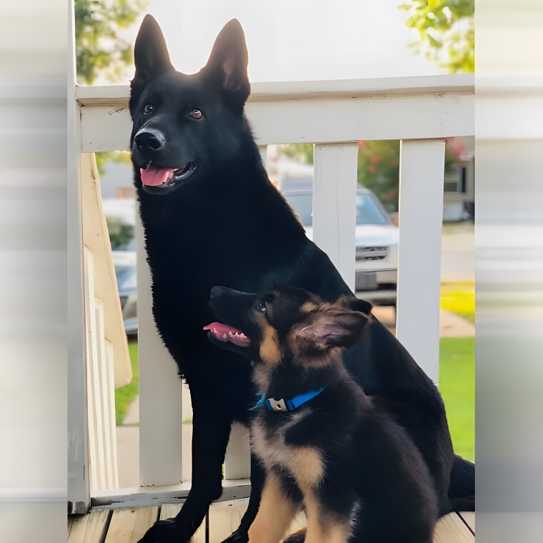 That is the look of love and admiration right there, and it seems as though this puppy is looking up to his big brother in both a physical and metaphorical sense.