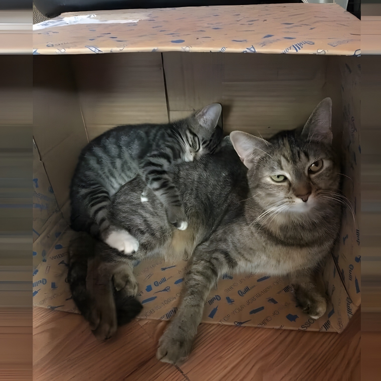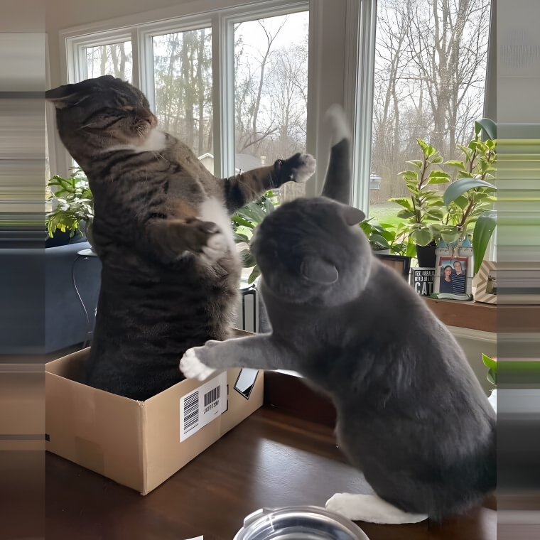 Most animal siblings love each other, but every animal has a bad day, right? But what makes a cat madder than anything? Their sibling stealing their box! Although these guys were supposed to be sharing their lovely box (despite the fact that they had their own beds just a short walk away), one of these siblings decided to have a little extra time to snuggle and cuddle amongst the cardboard corners/