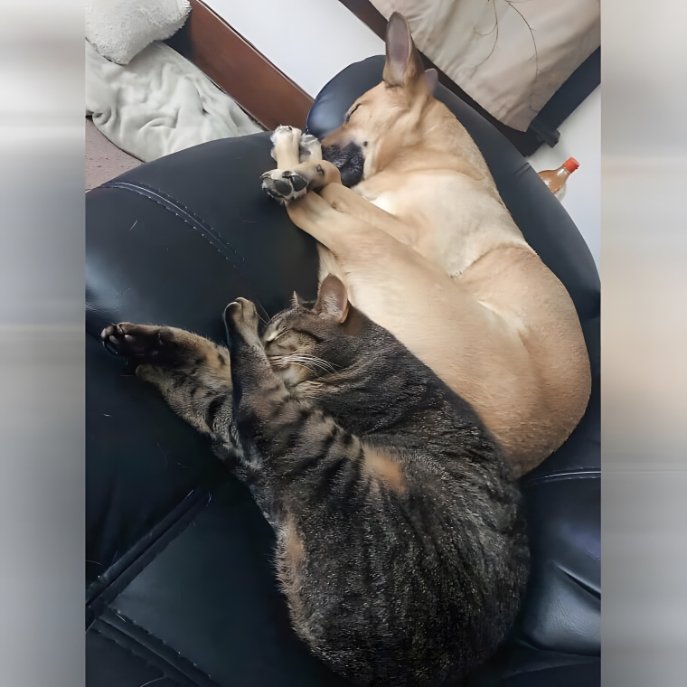 Have you ever had a situation where you spend so much time with someone that you start to behave like them? You pick up their little sayings, you mimic their mannerisms, and you start doing everything they do? While you might have assumed that this only happened to humans, this adorable animal photo is proof that it can also happen to your pets. Even when you have a cat and a dog together.