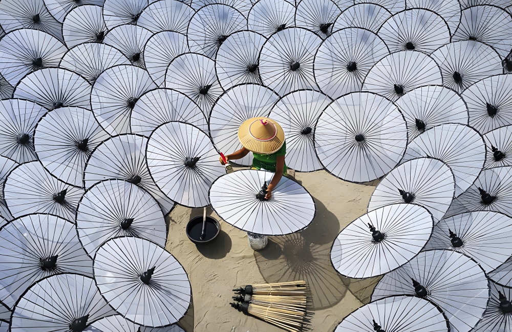 Aung ThuYa took this photo, believe it or not, with his cellphone, something he explained to viewers in a YouTube video on his channel. “Among the White Umbrellas” is a photograph of a woman seated inside a factory, wearing a sunhat and painting a traditional umbrella. The factory in this photo is located in Mandalay, Myanmar.