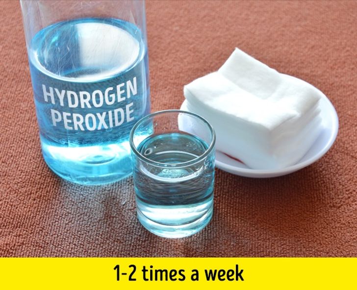 Before using hydrogen peroxide, make sure that your teeth aren’t too sensitive. If everything is fine, simply dip a cotton swab into the peroxide, and gently rub your teeth. However, this whitening technique isn’t recommended for frequent use as it can harm your enamel.