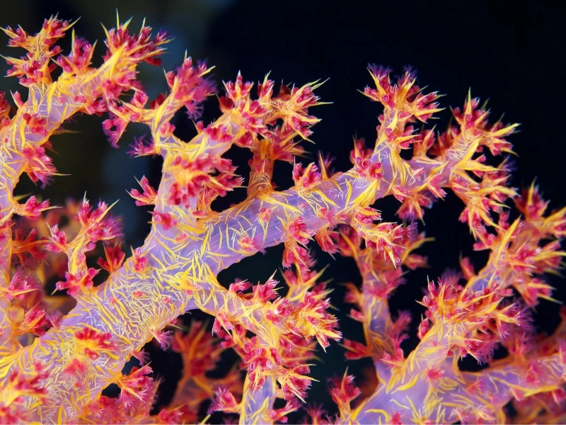 A real gem of the coral world, the Carnation Coral boasts vivid hues and complex branching form. Unlike many of the coral species we have covered, the Carnation Coral is a soft coral devoid of the stony coral cousins’ hard calcium carbonate skeleton. This species is really unique in that it lacks parasitic algae entirely. The Carnation Coral is an active filter feeder, gathering plankton and organic particles from the water column using its feathery polyps, therefore substituting energy from photosynthesis for another kind. This unusual feeding approach lets it flourish in places where normal corals cannot, including deeper waters and caverns where light is rare. From beautiful pinks and purple to brilliant oranges and yellows, the Carnation Coral exhibits an amazing range of hues. These colours serve as a warning to possible predators that the coral contains harmful chemicals, not only for display. These poisons not only save the coral but also pique the curiosity of marine pharmacology experts investigating their possible medical uses. The Carnation Coral’s capacity to expand and deflate its body is still another intriguing feature. Fully inflated, the coral can expand up to 100 times, therefore optimising its surface area for feeding. It can rapidly deflate under disturbance or during high currents, therefore lowering drag and stopping damage. The Carnation Coral is threatened from habitat degradation and collection for the aquarium trade notwithstanding its special adaptations. Protection of the several environments where these corals are located and implementation of sustainable aquaculture methods to lower pressure on wild populations are the main priorities of conservation activities. [2] [2]