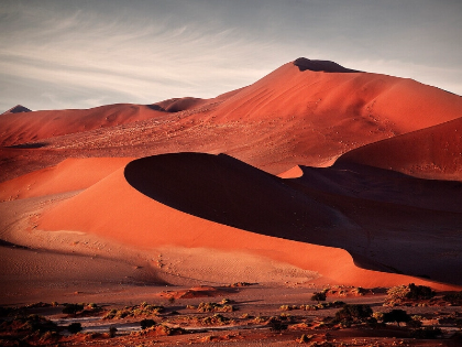 Namibia’s Red Desert peaks summer, a period of startling contrasts and unanticipated beauty when the calendar turns to January. Although daytime temperatures could rise to a sweltering 40°C, this time provides some of the most amazing and unusual viewing opportunities of the year. The scene seems almost unearthly because of the great heat creating shimmering mirages on the horizon.