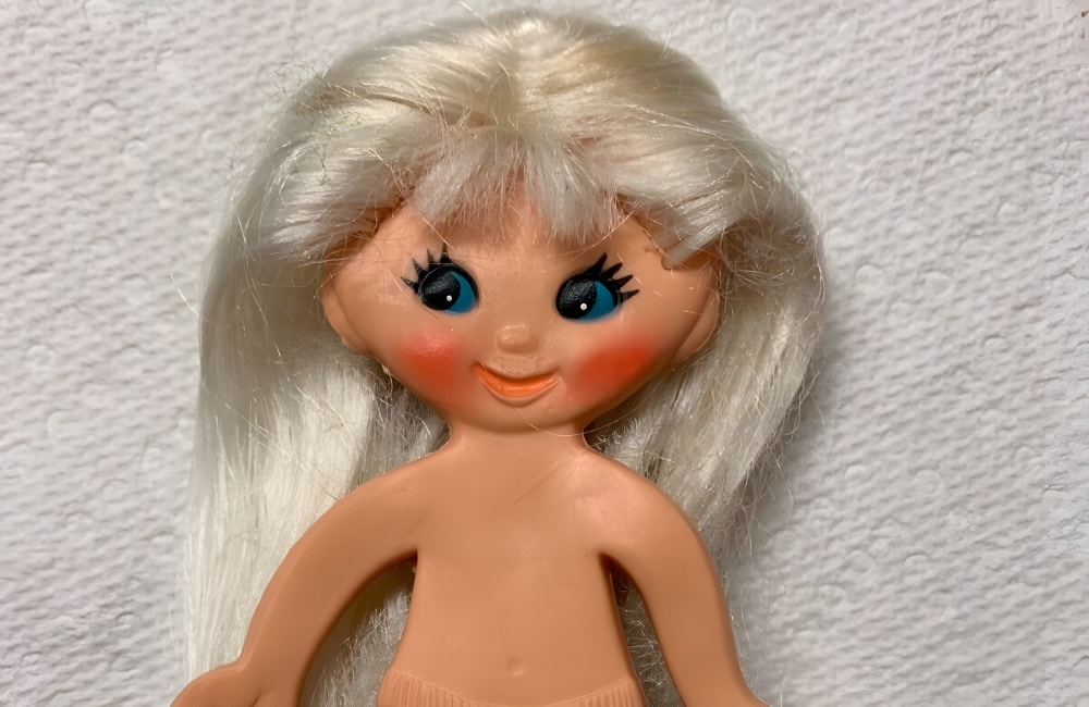 They were made from vinyl and interior wires, and they came in three sizes: Fashion, Medium, and Mini. You might remember commercials for these dolls, as they came with the catchy jingle, “She’s Flat and All That!”
