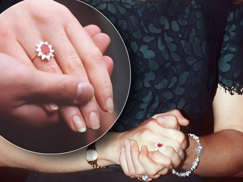 Prince Andrew believed that his fiancée Sarah Ferguson deserved a freshly created ring, thus he chose against asking his mother to lend him a family treasure. Breaking with tradition, Andrew purchased a stunning Burmese ruby ring set with ten diamonds on a thin band of yellow gold, following in the footsteps of his brother Charles.