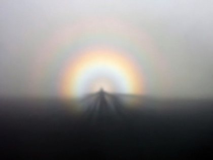 Although mountains are the most often occurring places, the phenomena can also be seen in other surroundings. On foggy mornings especially, tall structures in cities might occasionally offer the required elevation and viewpoint. Likewise, occasionally when flying above cloud layers, air passengers may see a Brocken Spectre from an aeroplane window.