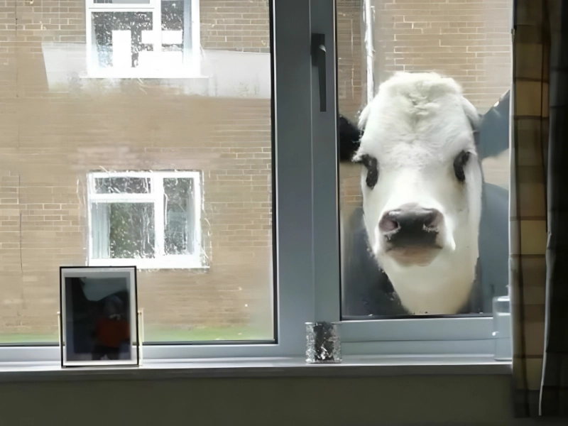 We’ve just been talking about how cute cows are, but that’s just when they’re frolicking in a meadow and not breaking into people’s homes to scare them. After the most restful snooze of your life, picture yourself walking over to grab a glass of water and discovering a cow head staring blankly into your living room! If you dropped the water glass from your hands, we wouldn’t hold it against you.