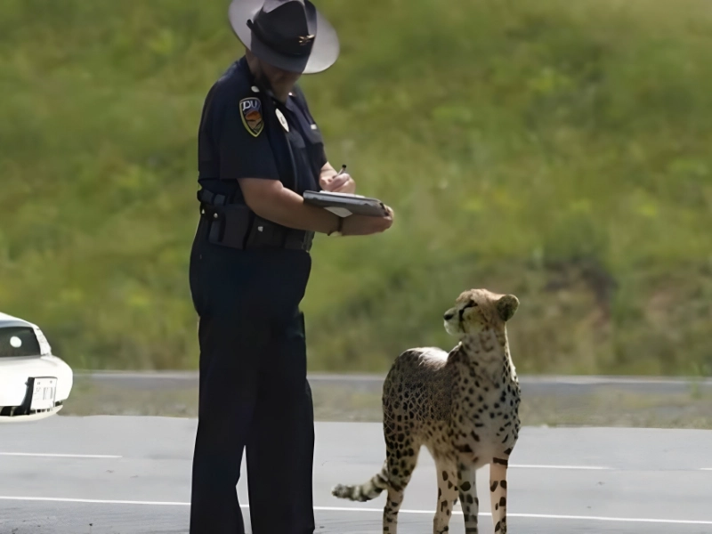 This image is so fantastic that it truly merits a special place on this list! It shows a traffic cop writing a ticket, which is quite standard, but the person for whom he is writing the ticket is none other than Chester the cheetah! The cheetah could easily devour the ticket and the person who wrote it, but instead he is just staring dumbfounded—likely in shock by the police officer’s boldness.