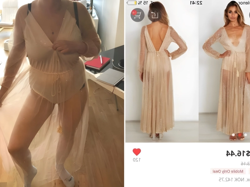 To be fair, this garment was once advertised for an even more ridiculously low $23.16, but what could this customer have expected? It is now listed for $16.44. You guessed it—the dress that was ordered on what appeared to be Alibaba or a comparable website was not at all accurate when it arrived in the mail.