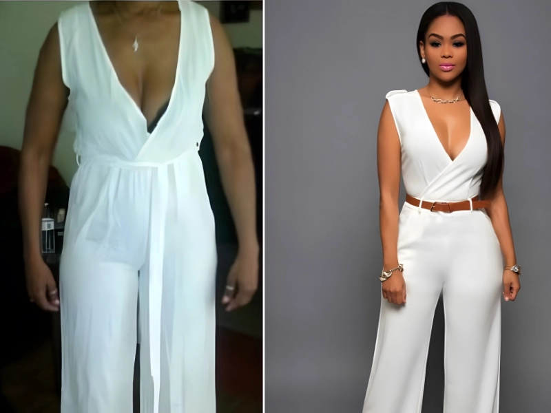 When a customer bought a white jumpsuit, she learned that lesson the hard way. The jumpsuit she received was not at all sophisticated or stylish; in fact, it looked cheap, and the material was not at all what had been represented. We’re positive that the copycat website unintentionally overlooked the fact that the jumpsuit’s belt was missing.