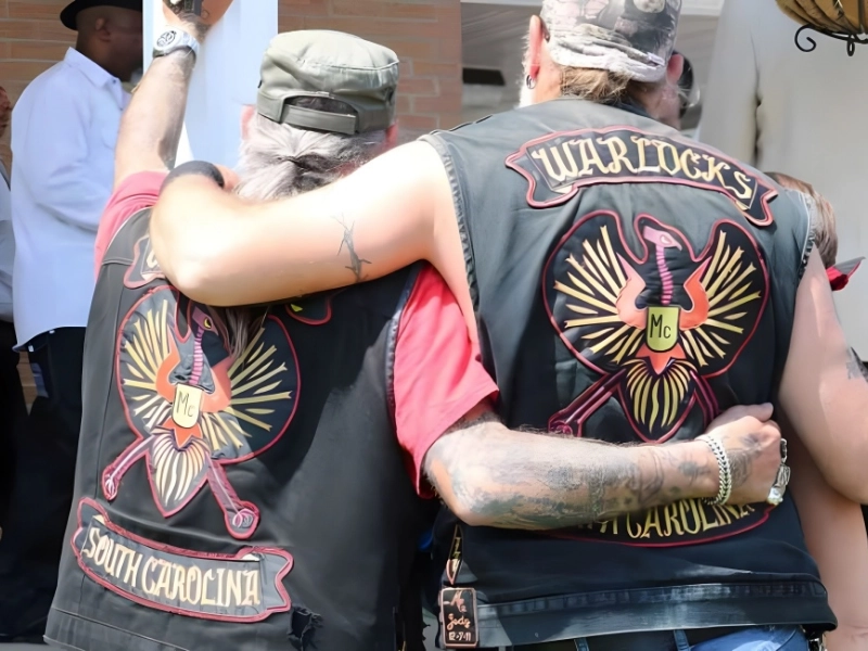 Warlock vest wearers are required to have the “Born to Lose” logo. Additionally, the club has registered a trademark for its colorful cartoon depicting a winged harpy, a figure from Greek mythology, ensuring that this design stays the MC’s property legally.